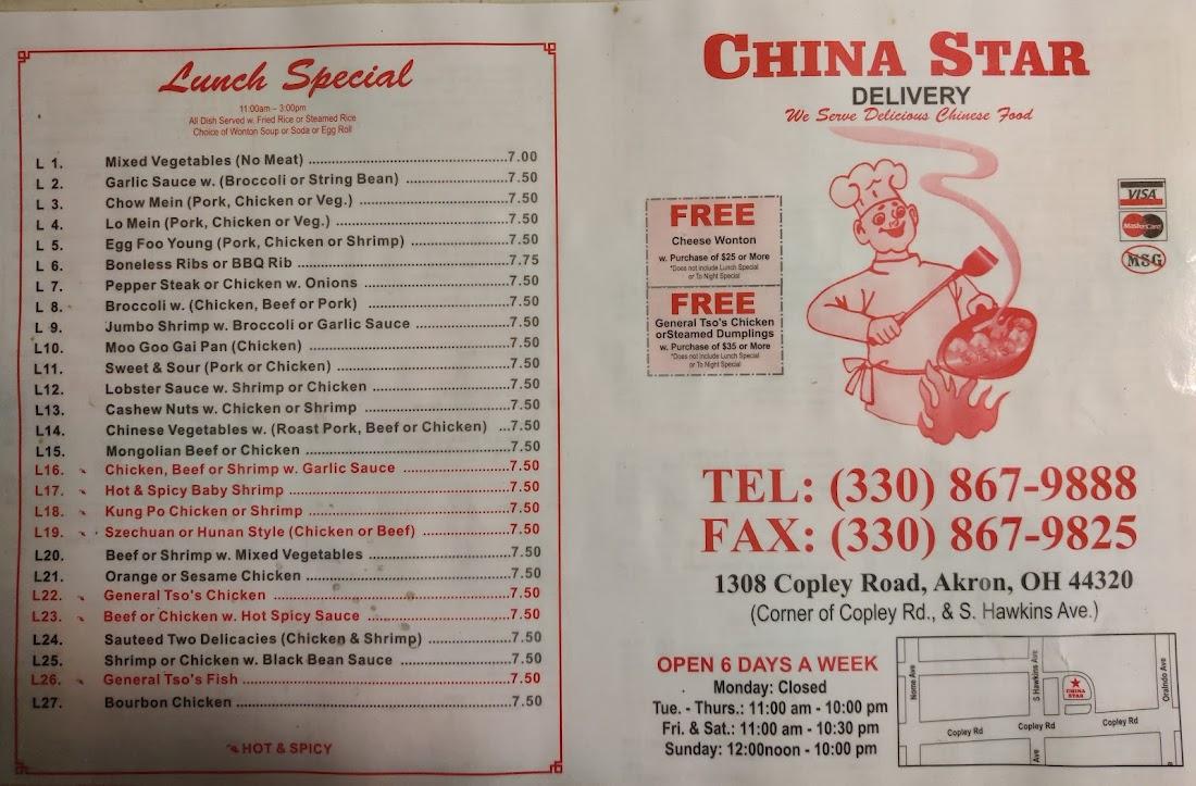 China Star is a proud Asian-owned Chinese restaurant in Akron, focused on delivering traditional Chinese food with a modern twist.